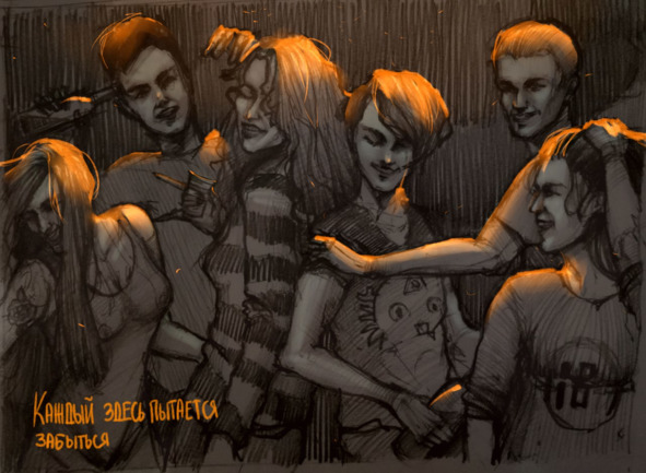 Я вышел из очередного магазина, в нос врезался странный запах. Пахло чем-то гнилым. Кажется, кто-то умер давно, но из-за отсутствия погребения разлагался где-то, и проносилось это на многие и многие кварталы. Возможно, всё это лишь глупые попытки оправдать свой чувствительный порог. Однако запах усиливался с каждой секундой. Пройдя несколько зданий вперёд, я увидел небольшую арку, ведущую в неизвестный квартал. Аромат разрастался сильнее и сильнее. Мне казалось, что ещё немного, и я упаду. Остановлюсь и всё. Но нет. Что-то тянуло вперёд. Шесть шагов. Мгновение и я уже на месте. Мой взор окинуло место. Оно отличалось от всего города. Тут было гораздо живее. Люди даже улыбались. Выходило, правда, аккуратно, чуть поднимая уголки губ, словно боялись, что их заметят. Дома уже не были привычно серые, а какие-то иссиня-чёрные. Это удивляло. Но не пугало, как остальная часть города. Выходило забавно. Запах, который был, мягко говоря, неприятный, привёл туда, где становится проще, чем в остальной городской реальности. Ещё несколько шагов. Хотелось тут остаться и забыться. Вдруг откуда ни возьмись, заиграла известная песня Егора Летова: