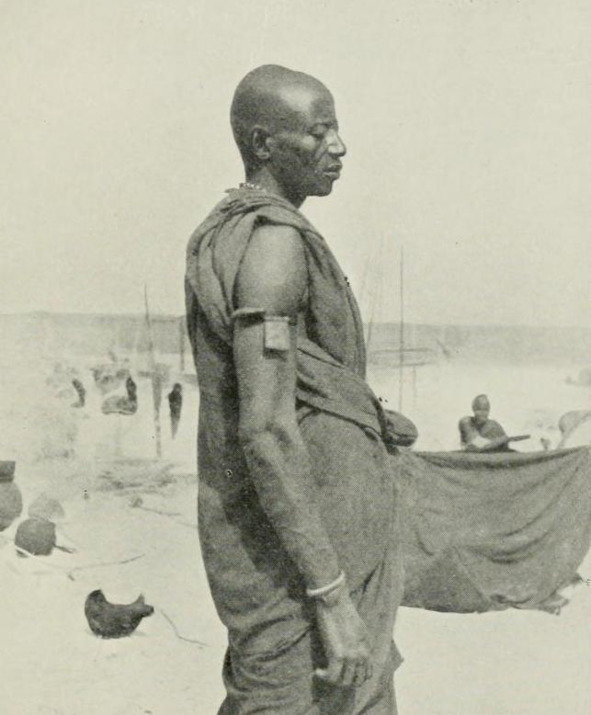Качелла вскоре стал откровенным и высказал мне свои проблемы. Он сообщил, что я первый белый человек, который когда-либо приходил на его остров. Вокруг деревни он показал мне большие открытые пространства, которые были сильно вытоптаны скотом, которого больше здесь не было, а затем рассказал мне, как туземные солдаты из окрестных гарнизонов (он не понял, из британских или французских) однажды приплыли в каноэ, увели стада и убили несколько людей. Чтобы подтвердить свой рассказ, он отвел меня в хижину, где лежал человек с разбитой пулей левой ногой, которая гноилась. Чтобы защитить себя от таких нападений в будущем, он попросил меня дать ему флаг. Но я чувствовал, что не смогу удовлетворить его просьбу, потому что я не был осведомлен о том, на территории какого протектората расположен этот остров и где проходит граница между нашими и французскими владениями.