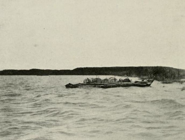 То же чувство охватило людей, когда лодки коснулись берега реки. Оделай (лодочник) выпрыгнул, взял кусочек земли в рот и съел его. Мужчины после того, как отбросили свои шесты, дико кричали и разбрелись по песчаной отмели. Никакой живности не было, чтобы увидеть нашу радость, за исключением диких гусей и уток, которые были обращены в бегство.