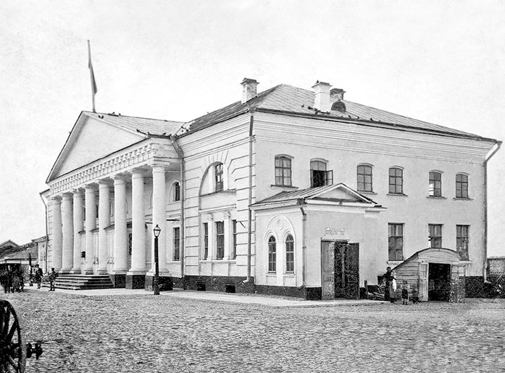 В новеньком доме земства (ныне улица Крестовая, 77) великие князья осмотрели ремесленно-промышленную выставку. Представленными экспонатами особо интересовался Сергей Александрович.