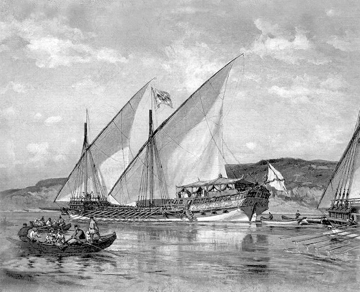Вечером 8 мая суда бросили якоря у Рыбной слободы, чтобы дождаться утра. Накануне путешествия Екатерина получила только что вышедший из печати роман «Велизарий» известного французского писателя, друга Вольтера, Жана-Франсуа Мармонтеля (1723–1799) и чтобы скоротать время, переводила его на русский язык. Одну главу перевела сама, остальные поручила вельможам.