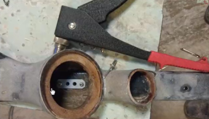 Дальше, внутри стойки, видим крепежные элементы, чтобы крепить стойку к металлу.