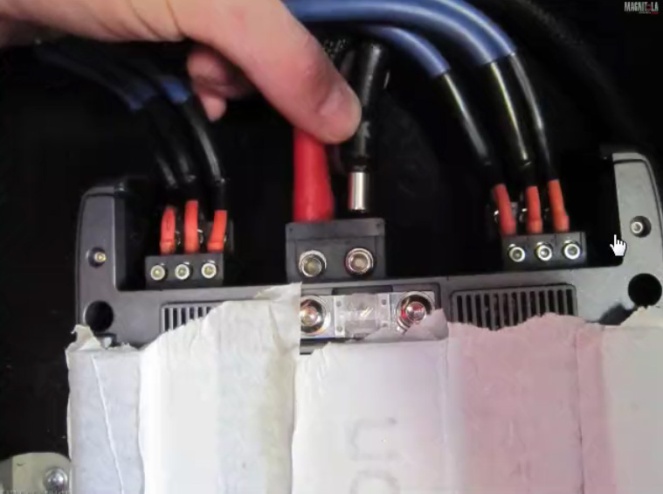 Теперь с проводкой. Что сейчас сделано с силовой проводкой? Какой аккумулятор, какие прокинуты провода по силе? Потому что я видел на фото межблоки, видел акустические провода, но не обратил внимания на силовую проводку.