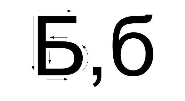 В графике этой буквы вселенский тор-круг начал изменяться, проявляться на физическом плане бытия, вырастает вертикальная стойка и полочка сверху. То есть графика буквы б есть практически зеркальный перевёртыш графики строчной буквы а. Эта буква внешне представляет собой кружок и полочку, сверху, символизирующую начало нового цикла развития, полочка есть покрытие, как бы «крыша» его. Причём эта «крыша», устремлена во времени вперёд, в будущее.