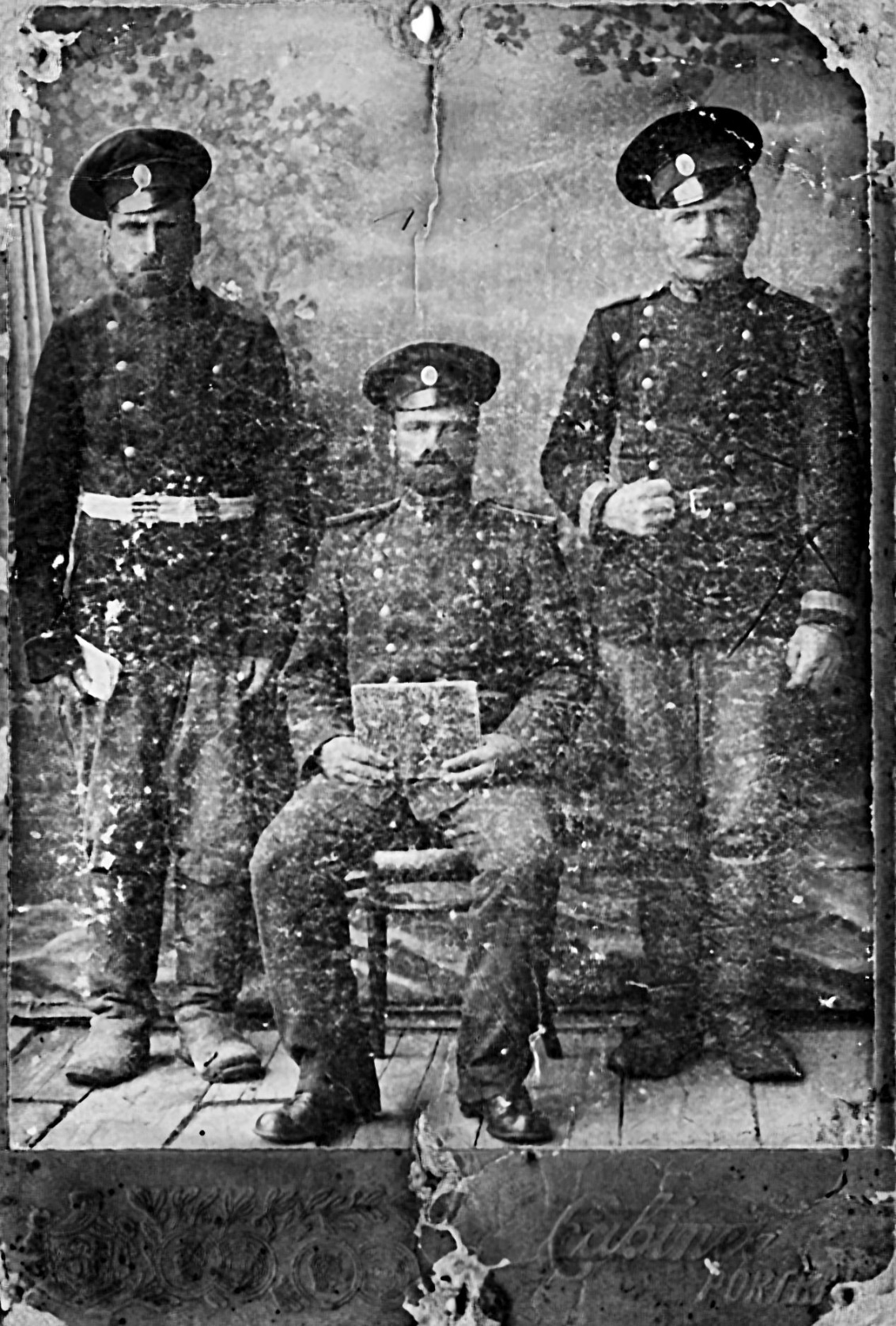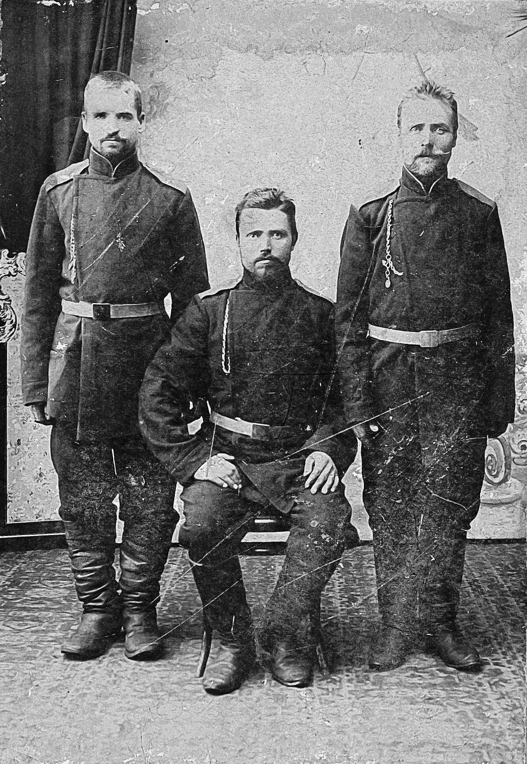 У меня сохранилась фотография деда Максима тоже со времен армейской службы. Рядом с ним односельчанин Тома Романюк и один сослуживец из Каменки по фамилии Фусу, как я припоминаю.