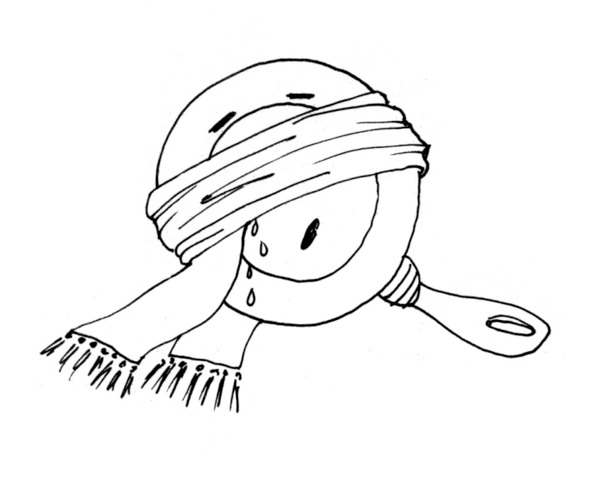 Одна девочка купила новую сковородку и решила выбросить старую. Ей было очень жалко выбрасывать её на помойку, но она всё-таки выбросила её. На следующий день, когда девочка выходила из квартиры, она увидела свою старую сковородку около дверей. Она очень удивилась и отнесла её на помойку опять. Вечером девочка пришла домой и увидела, что старая сковородка снова лежит около дверей. Девочке это очень не понравилось, и она почуяла неладное. Ночью они с мальчиком завязали глаза старой сковородке, положили её в чёрный пакет и в багажнике отвезли в лес. Там они бросили её завязанную и быстро уехали. Когда они выезжали на шоссе, девочке даже показалось, что кто-то в лесу зовёт на помощь и плачет. Утром девочка проснулась и увидела, что на кухне всё разбито, а в центре стола лежит старая сковородка и очень тяжело дышит.
