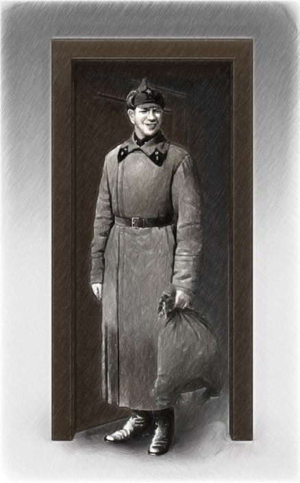 Дощатая дверь резко распахнулась, едва удержавшись на петлях. В прозрачном дверном проёме стоял солдат в шинели. С правого плеча на пол упал пустой вещь-мешок. Папа! Вернулся с финской войны отец. Весной 1940 года черноглазая получила первый урок по распилу брёвен. Морозы-то на Урале нешуточные. Отец пилил, а девочка, как могла, направляла движение пилы с другой стороны. Ах, как с папой было хорошо! Добрый, весёлый, обаятельный, общительный. Круглое лицо, глаза из щёлочек вмиг превращаются в смеющиеся большие; курносый нос. Машинист паровоза, грамотный, коммунист. Уважаемый человек!