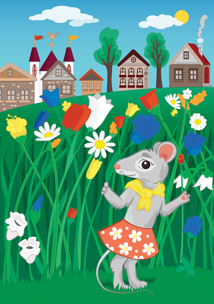 Недалеко от большого города, у деревни с милым сердцу названием Берёзки, раскинулся луг с многоцветным разнотравьем. Там, в норке под лопухом, жила да поживала маленькая серая мышь-полёвка.