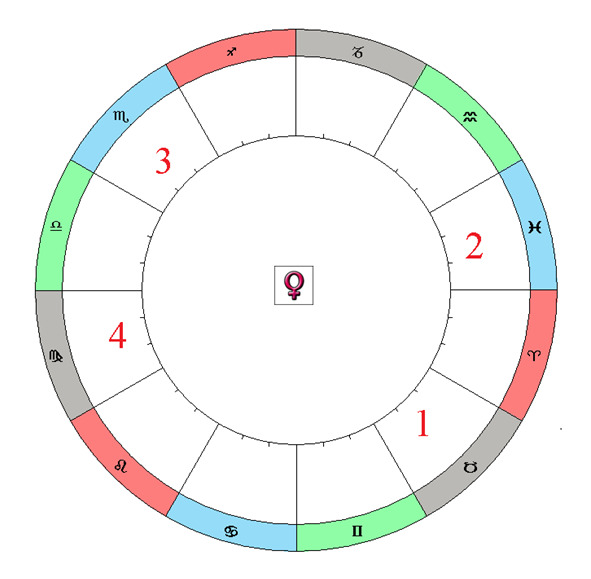 На этом примере уже возникают первые вопросы. Почему у хозяина Овна задействованы все четыре Стихии, а у хозяина Тельца – две? Как следствие, проявляется иная конфигурация Зодиакального знака. Хотя остаётся прежний вектор движения – против хода Зодиака.