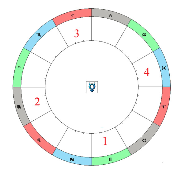 На примере знака Телец (Рис. 009) мы наблюдаем следующие закономерности.
