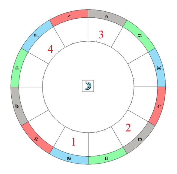 При исследовании четвёртого Зодиакального знака выявляются основные закономерности двух типов: две конфигурации, два типа вовлечённости Стихий. Но при этом, почему-то, вовлекаются только две Стихии: Воды и Земли. Стихии Огня и Воздуха пока не проявляют себя в конфигурации Конверт.