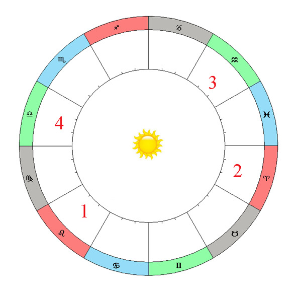 Обратите внимание, что и Стихии задействованы довольно странно. Например, стихия Воды принимает участие всеми тремя знаками Зодиака, а стихии Огня и Воздуха – только одним! Чем и как объясняется такая неравномерность участия Стихий?