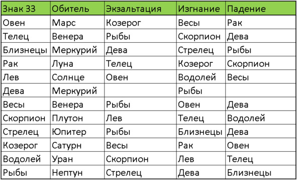 Итак, очевидно, что положение планет в Обители (Изгнании) в соответствующих Знаках Зодиака определяется не просто так, не по наитию или «внутренним ощущениям», а по чётким и понятным двум правилам: