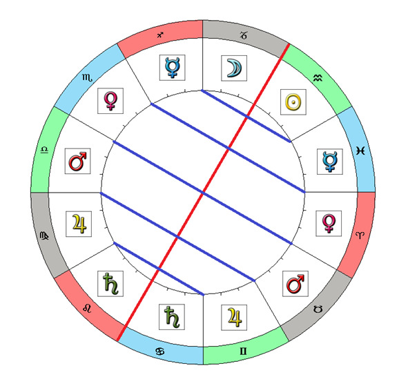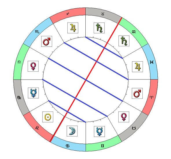 Здесь мы видим, что Плутон и «скорпионий» Марс выводят в доминирующие показатели конфигурацию Крест.