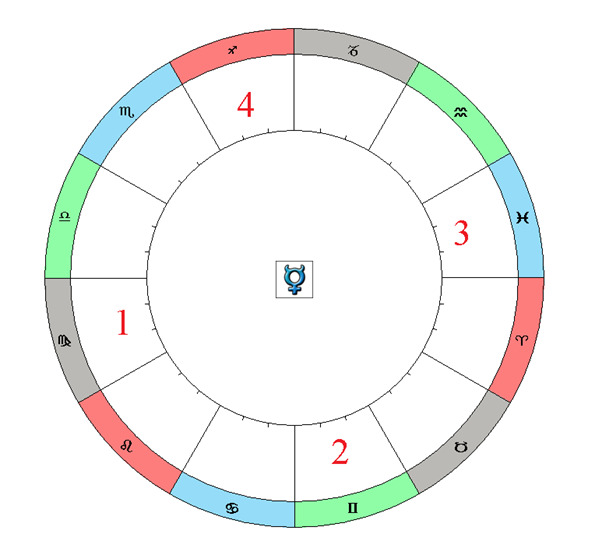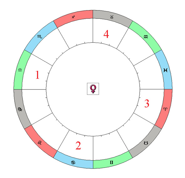 В кардинальном Кресте Стихия Воды является союзником для Стихии Огня. Для хозяйки Весов – Венеры, знаком Экзальтации становится Зодиакальный знак Рака, а знаком Падения – Зодиакальный знак Козерога.