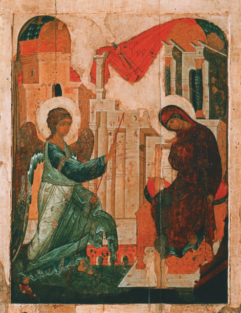 АНДРЕЙ РУБЛЕВ, ДАНИИЛ ЧЕРНЫЙ И МАСТЕРСКАЯ. Благовещение. 1408. Москва. Государственная Третьяковская галерея, Москва