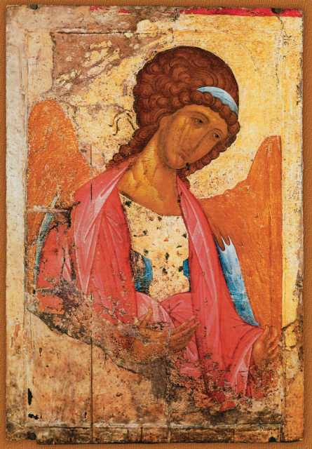АНДРЕЙ РУБЛЕВ. Архангел Михаил. Из «Звенигородского чина». Начало XV в. Государственная Третьяковская галерея, Москва