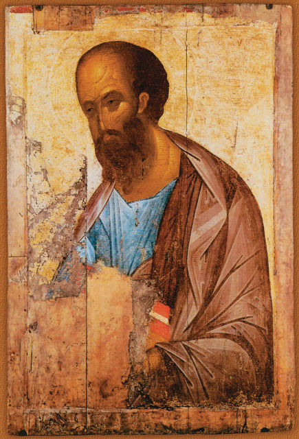 АНДРЕЙ РУБЛЕВ. Апостол Павел. Из «Звенигородского чина». Начало XV в. Государственная Третьяковская галерея, Москва