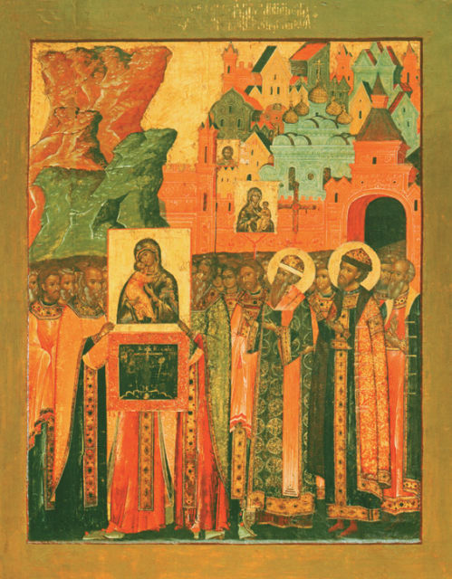Сретение иконы «Богоматерь Владимирская». Середина XVII. Москва. Государственная Третьяковская галерея, Москва