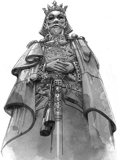 Slowly, his eyes rose to his father’s statue in the murky pool, caked with moss and dirt—King Arthur, Excalibur in hand, staring down at him.