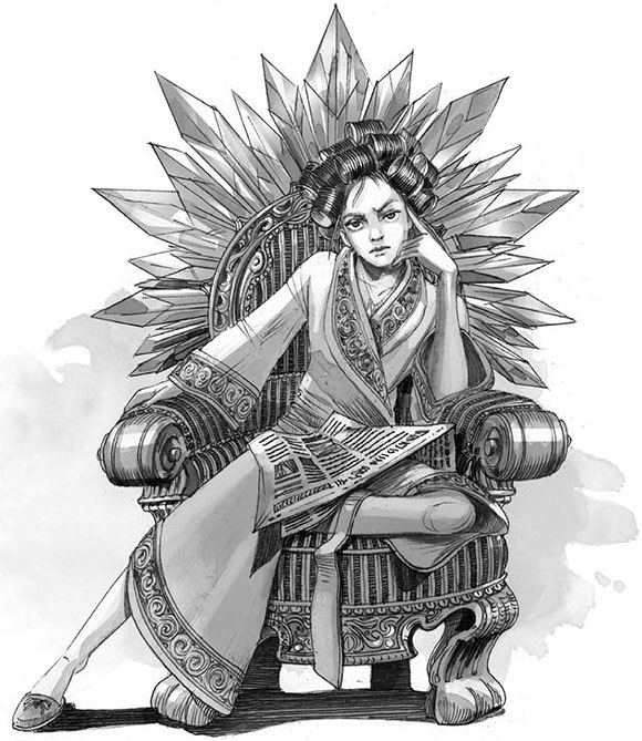 “Oh sweetie, that’s the past,” Sophie groaned, reclining against her glass throne, shaped like a five-pointed crown. “It’s a new year now and I’ve moved on, just like our former classmates who are off in the Woods, pursuing their fairy-tale quests. Look …”