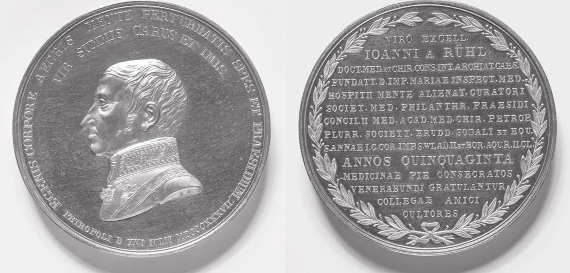 А.П. Лялин. Медаль в честь 50-летия врачебной деятельности И.Ф. Рюля (аверс и реверс). © Русский музей, Санкт-Петербург
