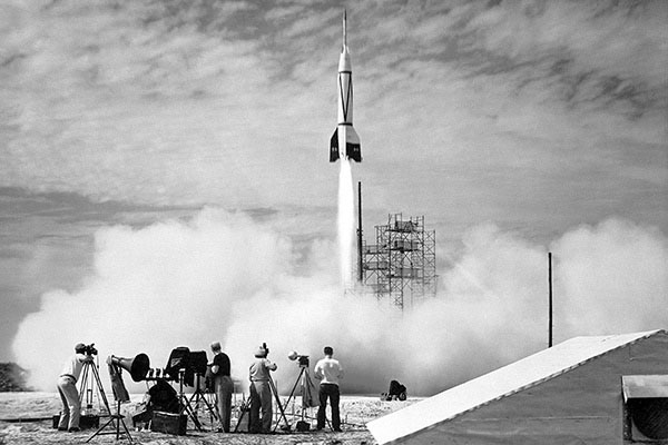 Запуск немецкой ракеты V-2 на полигоне Уайт Сэндз. Фото: Diomedia
