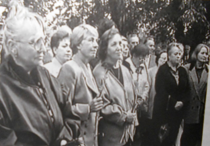 На снимке участники митинга: главный редактор радио «УГРЕША» Г. Н. Федяева, Л. Н. Липанова, Т. Я. Карпухина, В. П. Кондрашова, Л. П. Карманова