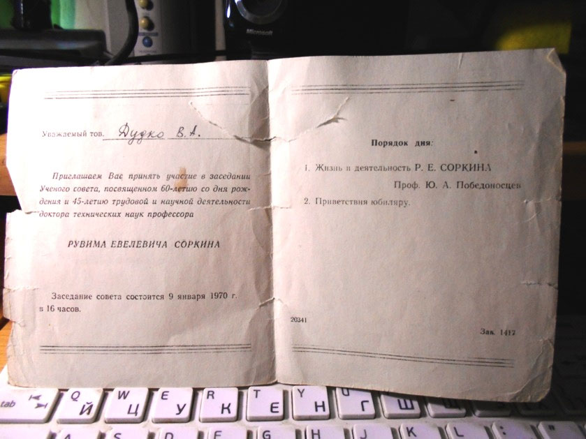 Вообще-то, мне хочется отметить, что изначально я думал, что мне легко удастся – на основе своих воспоминаний и имеющихся опубликованных материалов рассказать о моем Учителе – Рувиме Евелевиче Соркине, как о добром, очень умном человеке и талантливом учёном. Но задача оказалась не из простых.