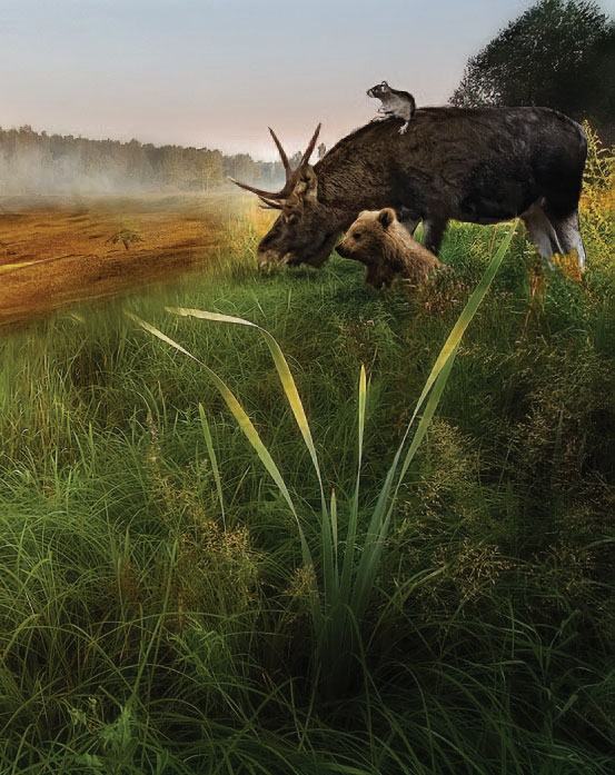 Он не удержался на могучей спине и кувырнулся вниз. Следом полетел и спрятавшийся за него мышонок. Оба шлепнулись в сочную весеннюю траву прямо перед лесным гигантом. Снизу лось показался им еще огромнее.