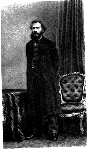 Дверь распахнулась, и на пороге показалась странная мужская фигура. Увидав гостя, служанка перестала удерживать, а странная фигура, робко поклонившись, шатаясь на согнутых ногах, вошла в комнату. Это был среднего роста мужчина, с узкой согнутой спиной и длинными всклокоченными волосами. На нем были короткое пальто и прорванные узкие панталоны, над шершавыми нечищенными сапогами. Скрутившийся веревкой галстук повязывал длинную белую шею. Грязная рубаха высовывалась из рукавов над худыми руками. Но, несмотря на чрезвычайную худобу тела, лицо его было нежно, бело, и даже свежий румянец играл на щеках, над черной редкой бородой и бакенбардами. Нечесанные волосы, закинутые кверху, открывали невысокий и чрезвычайно чистый лоб. Темные усталые глаза смотрели вперед мягко, искательно и вместе важно. Выражение их пленительно сливалось с выражением свежих, изогнутых в углах губ, видневшихся из-за редких усов.