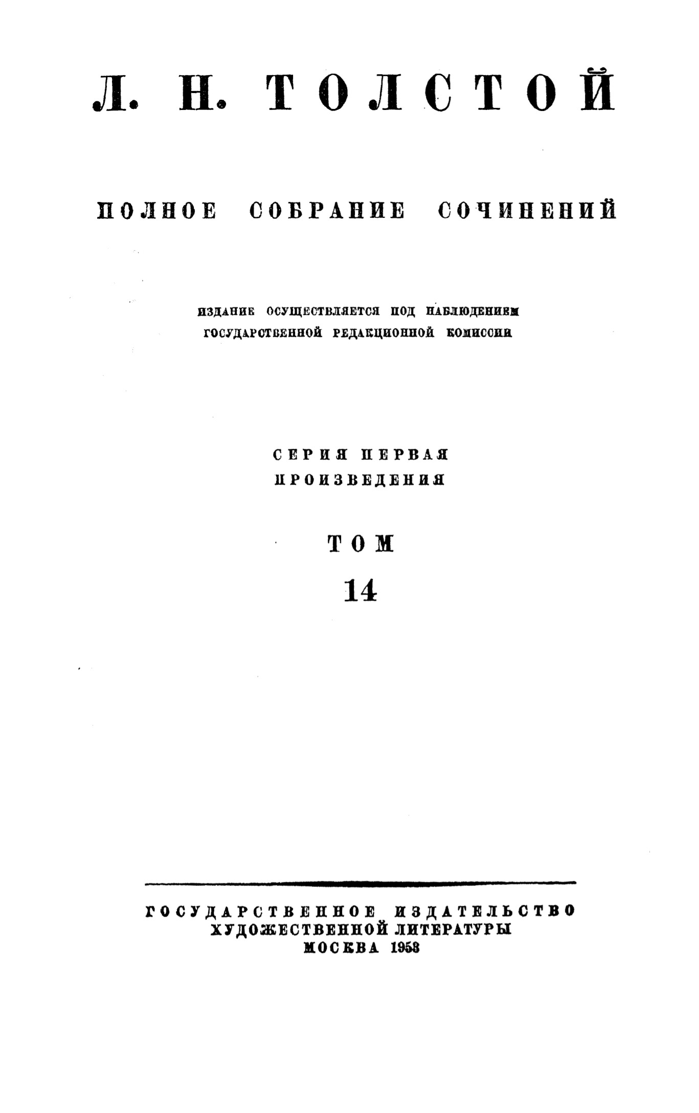Подготовлено на основе электронной копии 14-го тома Полного собрания сочинений Л.Н. Толстого, предоставленной Российской государственной библиотекой