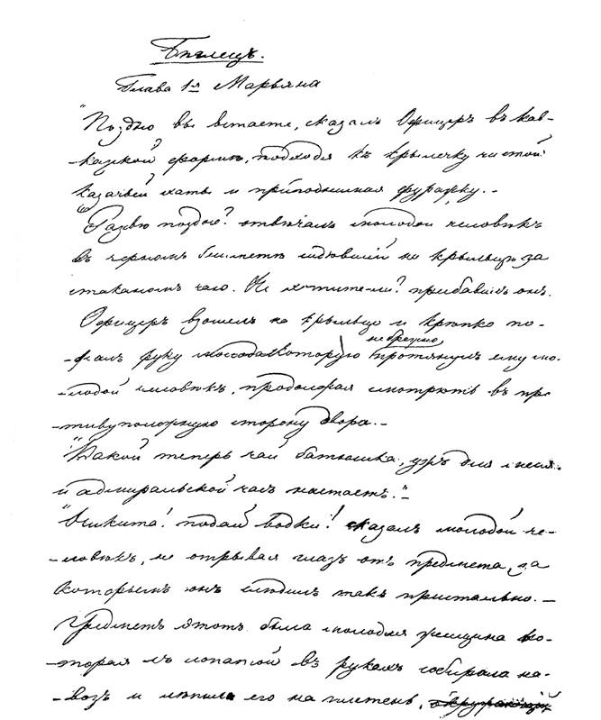 Первая страница рукописи первого варианта к I части «Казаков».