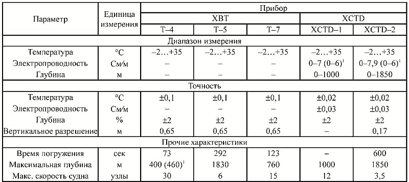Обрывные зонды широко используются в судовых высокоширотных экспедициях, поскольку наблюдения с помощью данных зондов можно производить в отсутствии специально оборудованного рабочего места и с минимальными потерями судового времени (без остановки судна). Работы выполняются с борта судов с помощью обрывных зондов типа XBT (expendable bathythermograph) и XCTD (expendable conductivity, temperature, depth probe) производства фирмы Lockheed Martin Corp. (США – Мексика), Tsurumi – Seiki Co., Ltd. (Япония), выполненных по лицензии фирмы Sippican Inc. (Япония), ныне входящей в той её части, которая производит океанологическое оборудование, в состав фирмы Lockheed Martin Corp. В ходе экспедиций последних лет использовались следующие модели батитермографов (XBT): T4, T5, T7, обрывных зондов электропроводности, температуры и давления (XCTD): XCTD-1, XCTD-2. Используемые в приборах датчики (табл. 3) по своему принципу работы аналогичны описанным ранее, отличаются малой инерцией. Для производства работ обрывными зондами кроме собственно зондов, используется пусковое устройство LM-3A производства Lockheed Martin Corp., бортовое устройство MK-21 той же фирмы или MK-130 производства фирмы Tsurumi-Seiki Co. и персональный компьютер с установленным на нем программным обеспечением «Win MK21» или «English_Ver. 3.02» данных фирм соответственно. Измеряемые параметры передаются от датчиков свободно падающего зонда через тонкую (0,15 мм) проволоку на бортовое устройство. Здесь аналоговые в случае XBT или цифровые сигналы в случае XCTD декодируются и передаются дальше в компьютер, работающий в режиме непрерывного получения данных. Перед началом работ программно производится настройка по типу прибора, пределам шкал измерения, устанавливается имя и место выводного файла с данными (в виде ASCII-кода). Затем после включения зонда производится контроль наличия связи в сети зонд-бортовое устройство. В случае XCTD далее производится тестирование датчиков зонда на воздухе. Глубина измерения температуры для зондов типа XBT определяется по времени наблюдения при полагающейся постоянной известной скорости погружения зонда. Поскольку работы с обрывными зондами, как правило, выполняются на ходу судна, процесс их выполнения полностью согласуется с мостиком в режиме двухсторонней связи.