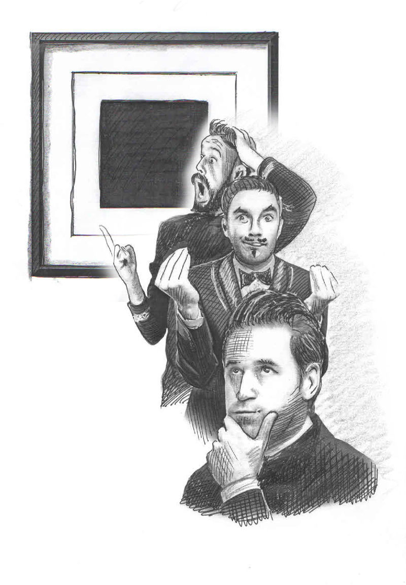 С этими словами Мурильо подошел к накрытому холсту и театральным движением сдернул с него драпировку. Я ожидал увидеть прекрасную картину, но меня настигло разочарование: изображение представляло собой черный квадрат в массивной деревянной раме, на нижней части которой имелась медная табличка с названием: «Седонна во мраке». Я грешным делом подумал было, что автор над нами решил поиздеваться, но взглянув на сияющее лицо художника отбросил эту мысль прочь: тот определенно был горд своим творением и жадно смотрел на присутствующих, явно ожидая похвалы.