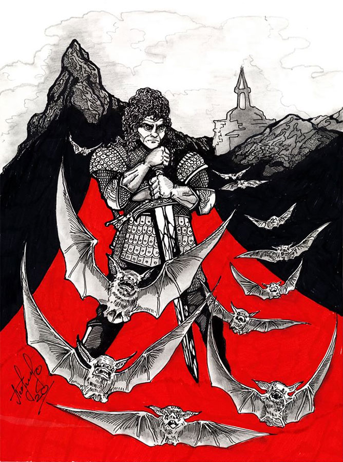 «Был юный Влад Дракула одарен умом и умением привлекать сердца людские. Владел он латынью, немецким и венгерским языками, а потом еще и турецким. Воинское искусство постигал он не только на Западе, но и на Востоке, кои навыки потом неоднократно и с таким успехом применял. Его рыцарская доблесть не знала себе равных. С турниров не возвращался Дракула побежденным, и даже в славном городе Нюрнберге сохранилась память о достославном его поединке с немецкими рыцарями. Был Дракула высок ростом, весьма крепко сложен и строен. Черты его были цветущими: орлиный нос, длинные ресницы, зеленые, широко раскрытые глаза. Черные кудри волнами ниспадали на широкие плечи. Оборачивались жены ему вослед, вздыхали девицы. И был он силен, как бык, и вынослив. Измученная войнами страна давно ждала такого господаря».