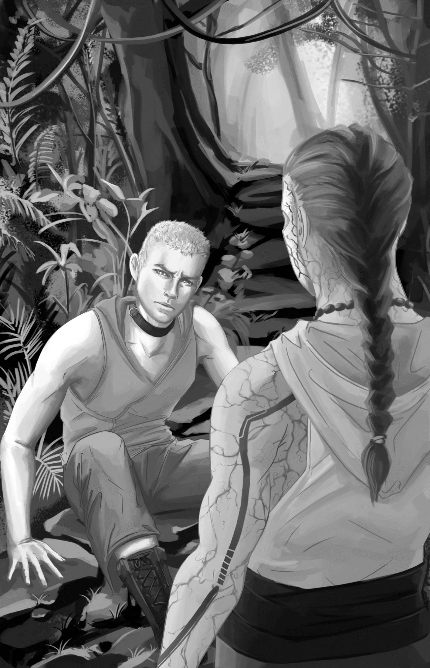 Ал легко перепрыгнул через поросший сине-зеленым мхом камень и резко остановился. Впереди, тяжело дыша, поднимался человек, тащивший на спине заполненную плодами имаги корзину. Судя по коротко выбритому затылку и черному ошейнику, раб.