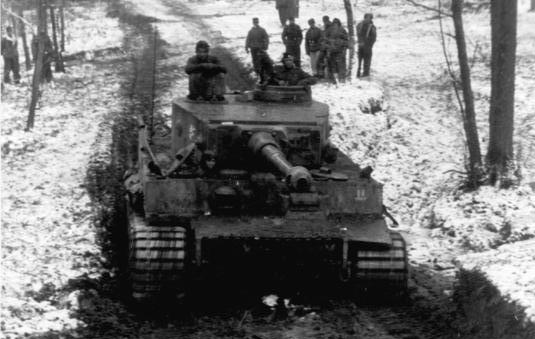 *** Тяжёлый немецкий танк стоял за крайней хатой, из-за которой высовывался только лишь набалдашник его дульного тормоза. Двигатель был заведён, экипаж был на своих местах. И они уже были предупреждены по рации о каком-то сумасшедшем русском танке, который несётся по центральной улице села в их сторону, разнося всё в мелкую труху. Из-за дома, закрывавшего вид на дорогу, командир танка не видел того, что происходило на дороге, но видя паническую реакцию стоявших на дороге мотоциклистов (они лихорадочно и почему-то все разом начали сруливать с дороги на обочину), он, правильно оценив сложившуюся ситуацию, дал команду механику-водителю. Тигр, с грохотом перданув облаком выхлопа синтетического бензина, и с натугой стряхнув с катков намёрзшую за ночь заледеневшую грязь, тронулся с места, и стал выползать из-за хаты на дорогу…