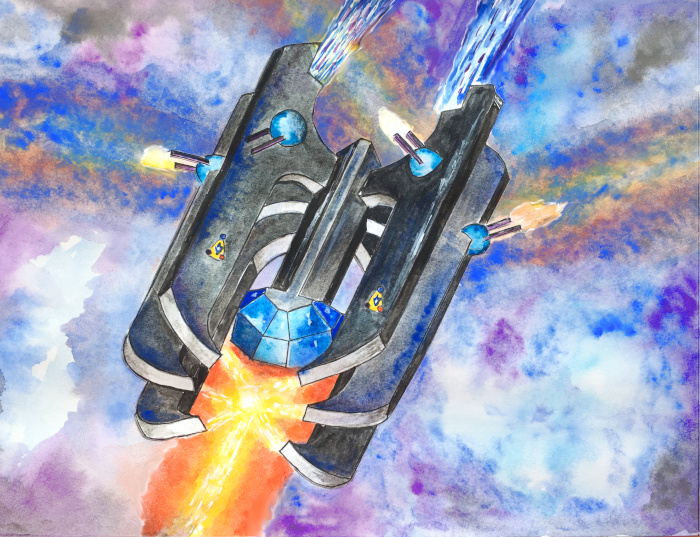 Открылся выход из Ими- пространства, и оттуда вынырнул крейсер. Он превосходил размером даже Пятона. Шесть длинных крыльев, на каждом из которых находилась мощное орудие, уходили далеко за нос корабля. На их концах были видны генераторы энергии для лучевого оружия. И это оружие корабль сразу же продемонстрировал, уничтожив одним залпом ещё один Четыреон.