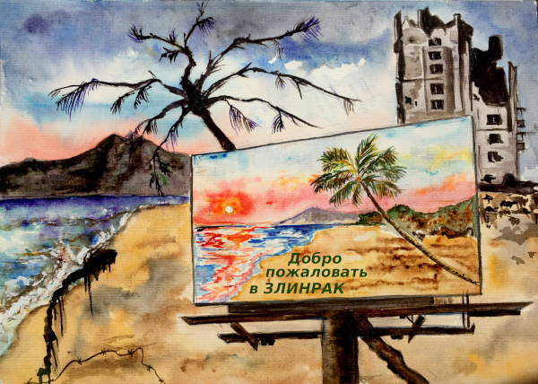 Через некоторое время Правитель понял, что море сзади – это всего лишь изображение на рекламном щите. На нём было красивыми красными буквами написано: