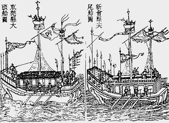 В начале XIII столетия флот Сунов владел морями от побережья Камбоджи до Японии и Кореи. Общее количество одних только военных судов достигало 600. Арабский путешественник Ибн-Баттута, побывавший в 1340-х гг. в Китае, видел колоссальные корабли, которые строились на верфях Зайтуна (Цюаньчжоу) специально для дальних плаваний в океане. «Каждый из них, – пишет Ибн-Баттута, – имеет на борту 1000 человек: 600 моряков и 400 солдат, и сопровождают его три посыльных судна».