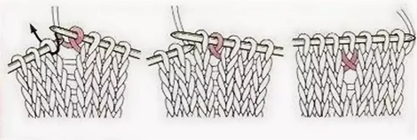 Прибавка из петли предыдущего ряда – вытягиваем спицей петлю из предыдущего ряда, надеваем на левую спицу и провязываем.