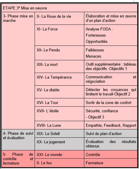 Voici un aperçu de ce que chaque carte du Tarot apporte dans ce processus de coaching.