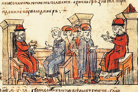 Изложение мусульманами своей веры князю Владимиру. Миниатюра из Радзивилловской рукописи