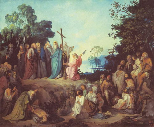 Апостол Андрей Первозванный водружает крест на горах Киевских. Худ. Н. Ломтев