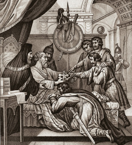 Наконец, чувствуя приближение смерти, Ярослав созвал детей своих и хотел благоразумным наставлением предупредить всякую распрю между ими. «Скоро не будет меня на свете, – говорил он, – вы, дети одного отца и матери, должны не только называться братьями, но и сердечно любить друг друга. Знайте, что междоусобие, бедственное лично для вас, погубит славу и величие Государства, основанного счастливыми трудами наших отцов и дедов. Мир и согласие ваше утвердят его могущество. Изяслав, старший брат, заступит мое место и сядет на престоле Киевском: повинуйтесь ему, как вы отцу повиновались. Святославу даю Чернигов, Всеволоду – Переяславль, Вячеславу – Смоленск: каждый да будет доволен своею частию, или старший брат да судит вас как Государь! Он защитит утесненного и накажет виновного». Слова достопамятные, мудрые и бесполезные!