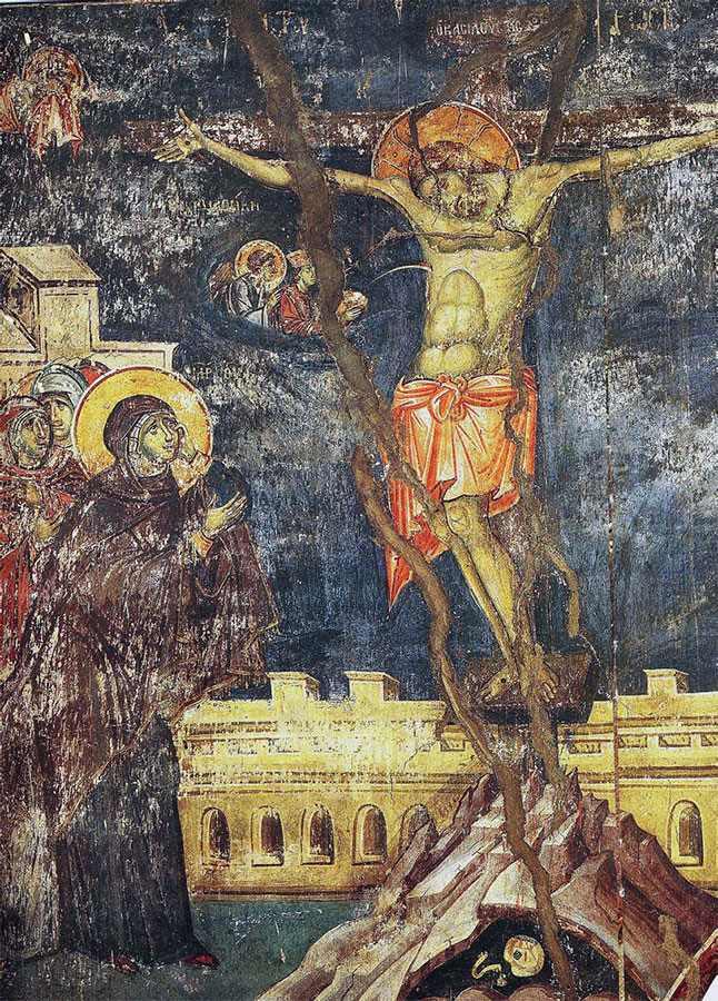 Распятие. Фрагмент фрески. Монастырь Протат, Афон