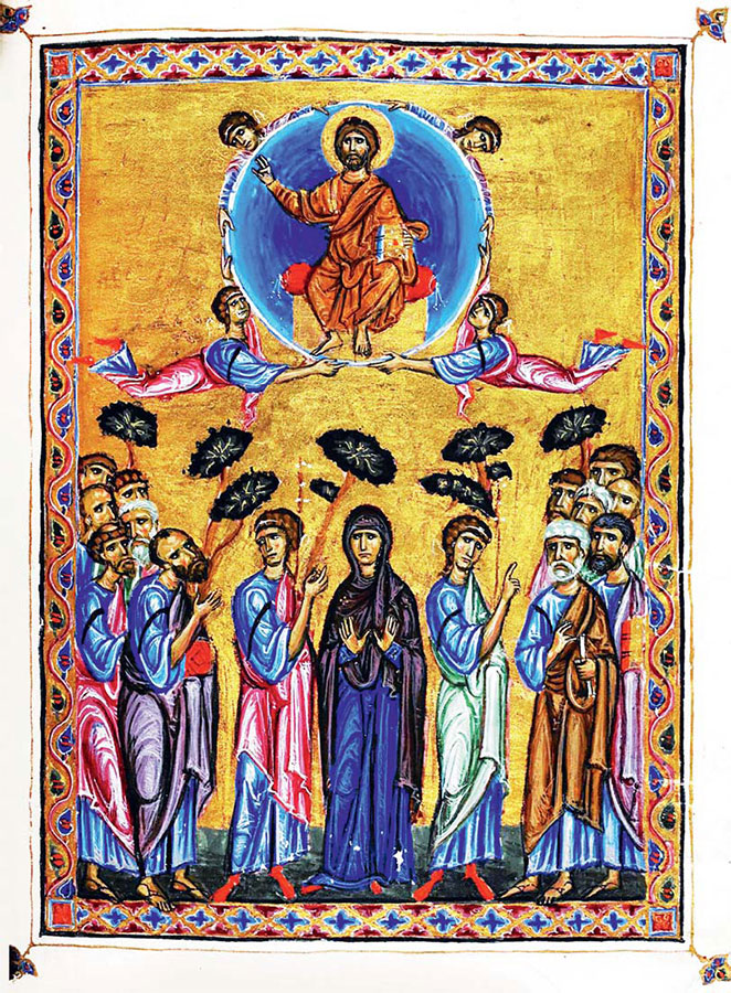Вознесение Господне. Псалтирь королевы Милисенты, книжная миниатюра. 1131–1143 гг. Британская библиотека, Лондон, Великобритания