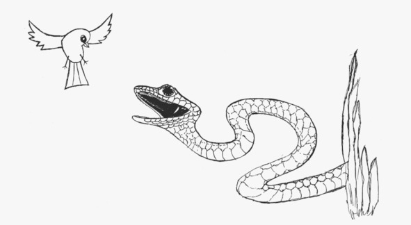 – Шшшш, – шипела змея, подползая к птичке, – мой обед будет сегодня гораздо сытнее, чем я думала.