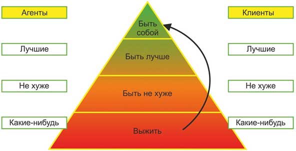 По этому сценарию развиваются большинство компаний, и, судя по тому, что на рынке в каждой сфере существует всего один-два лидера, лишь единицы добираются до четвертой эволюционной ступени.